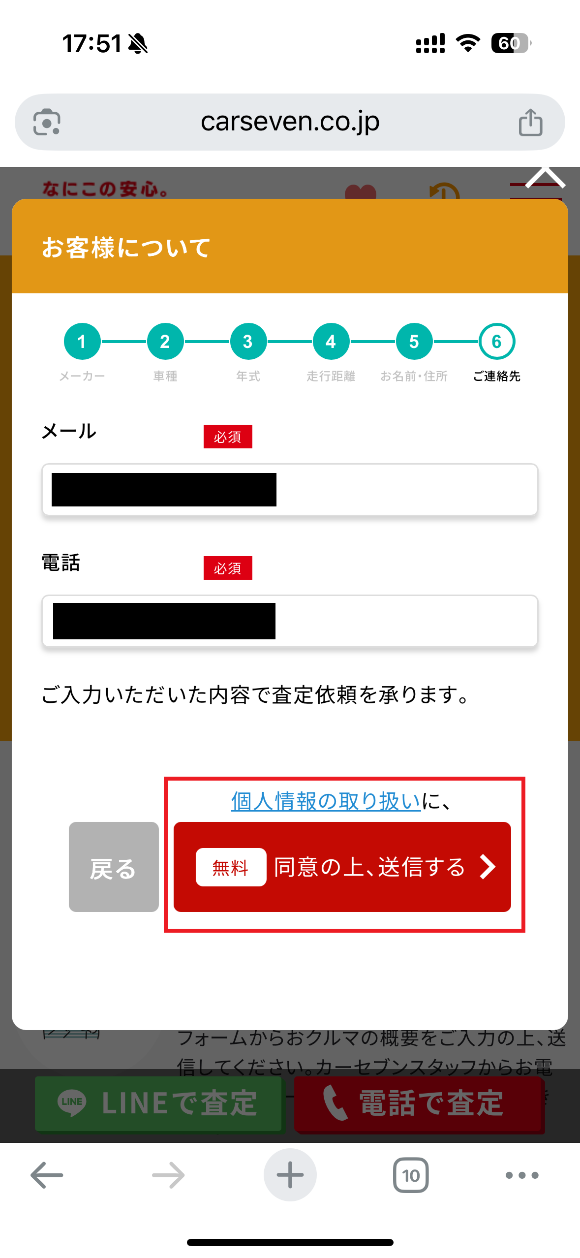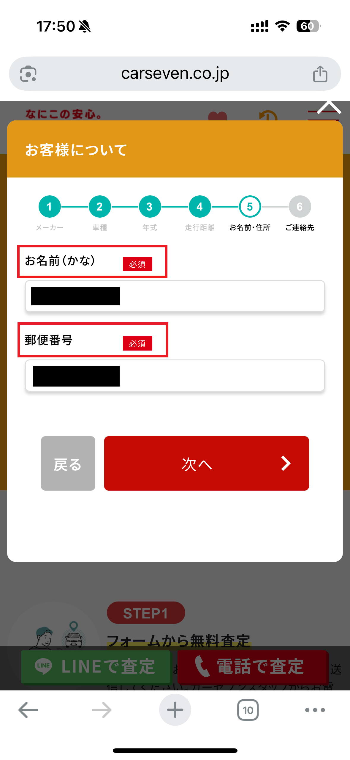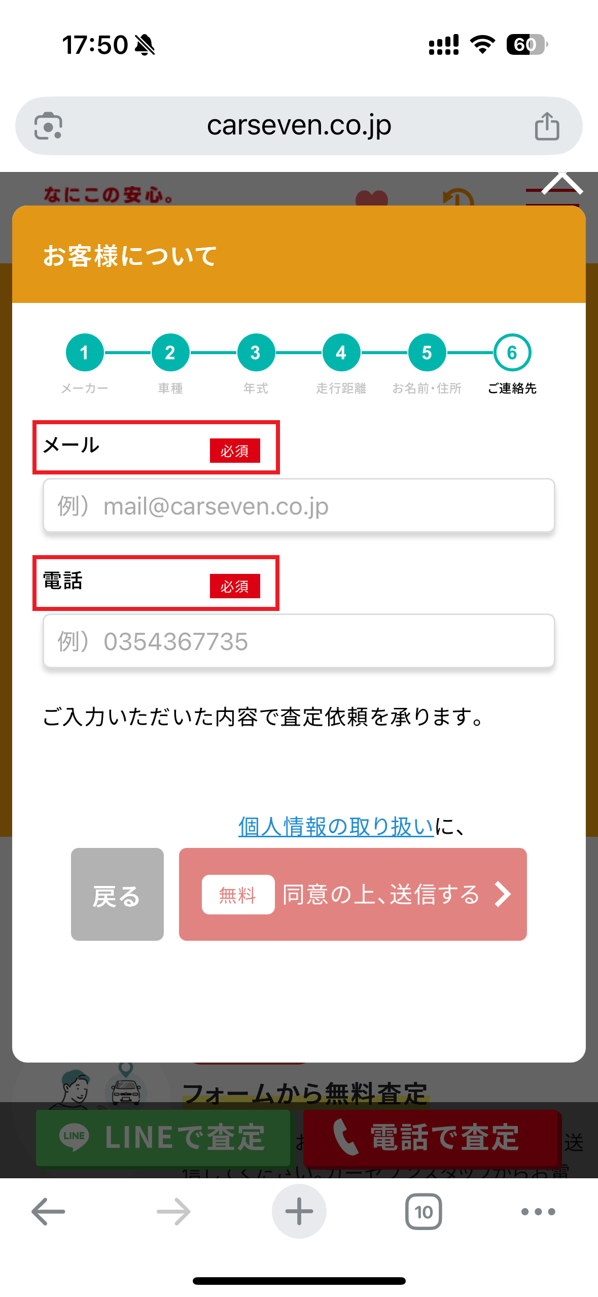 カーセブンのサイトに入り、少しスクロールするとフォームがあります。