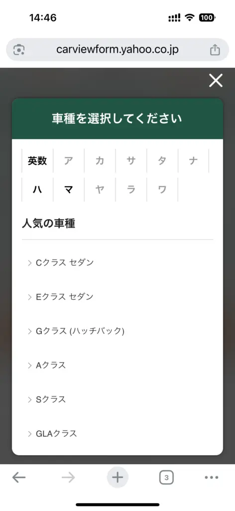 カービューのサイトに入り、少し下がると入力フォームがあります。