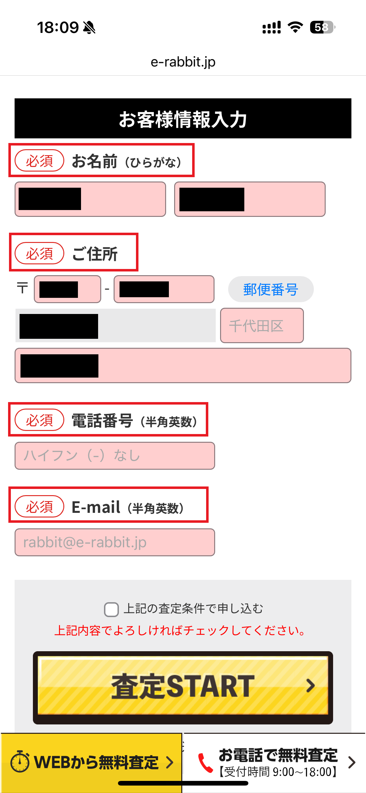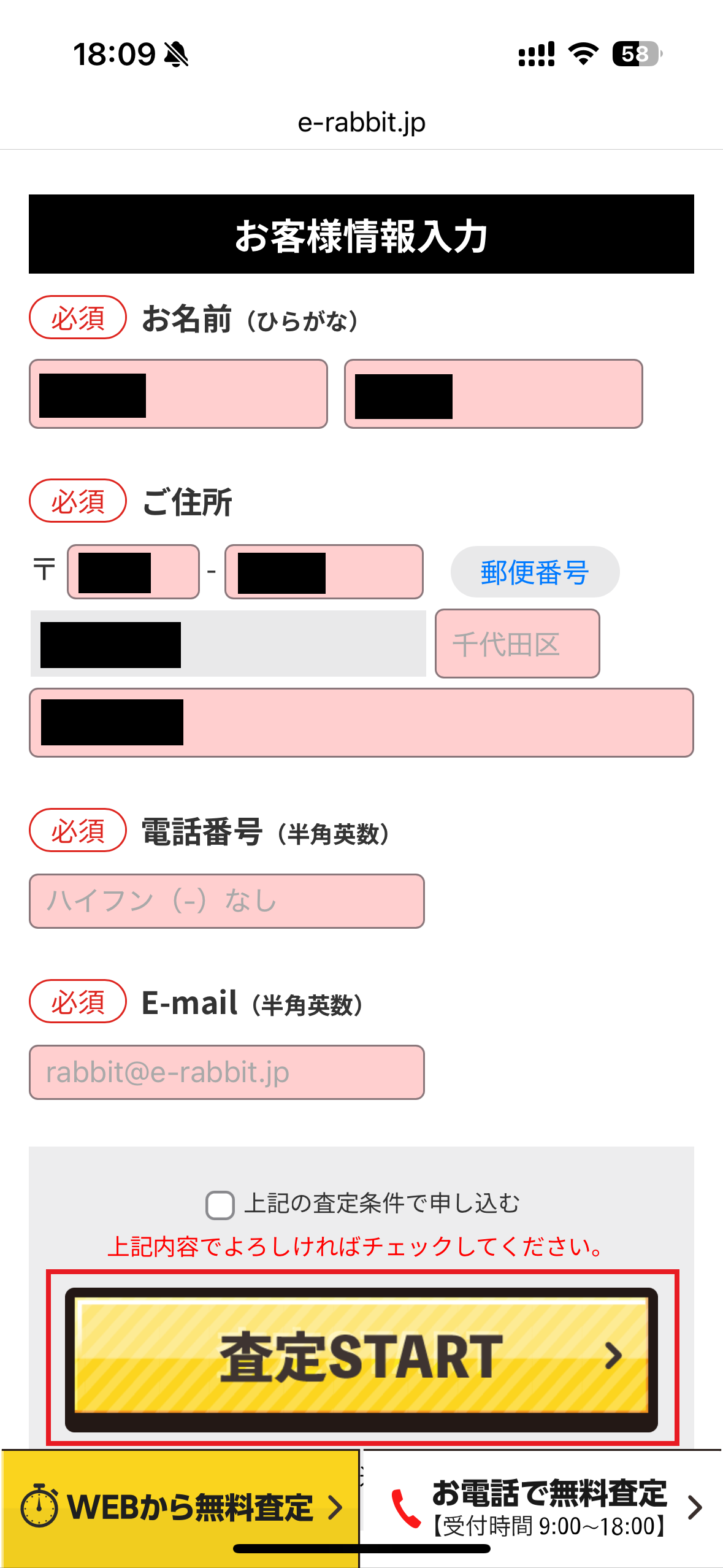ラビットのサイトに入り、少しスクロールするとフォームがあります。