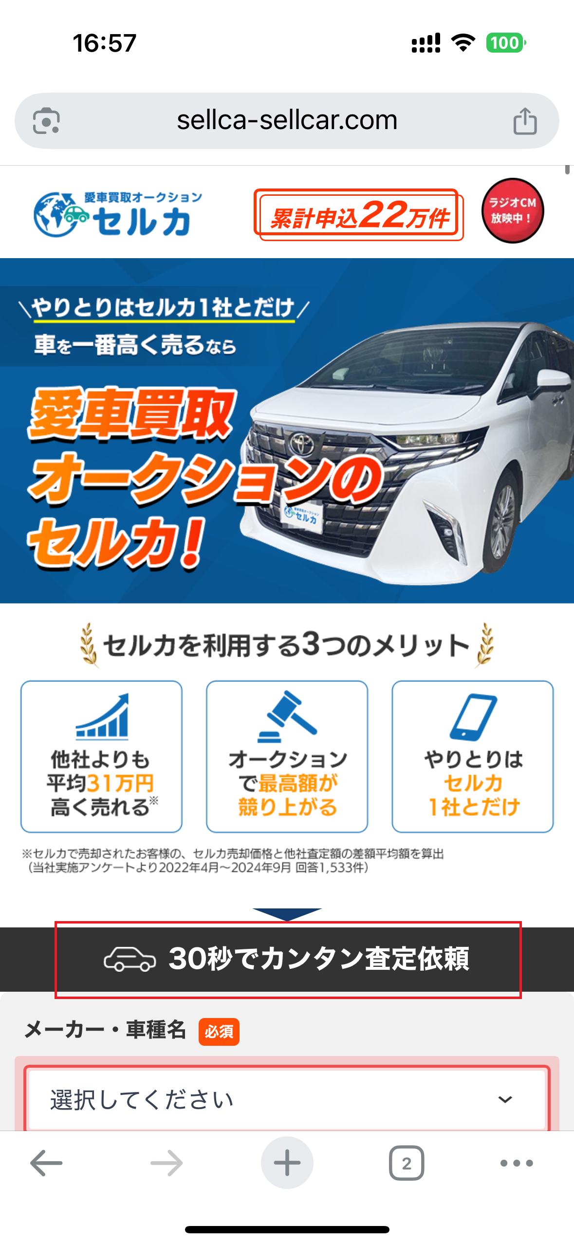 少しでも高値で売れるならと、どんな車も査定できるセルカを利用してみました。